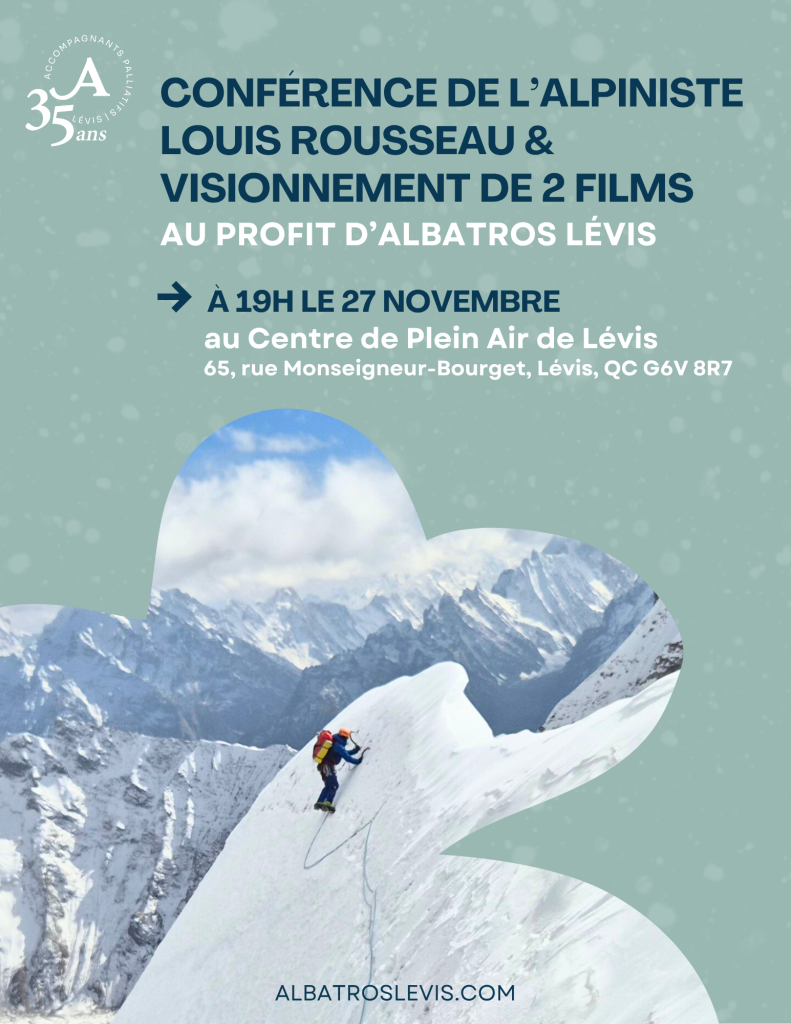 Conférence de l’alpiniste Louis Rousseau & visionnement de deux films au profit d’Albatros Lévis